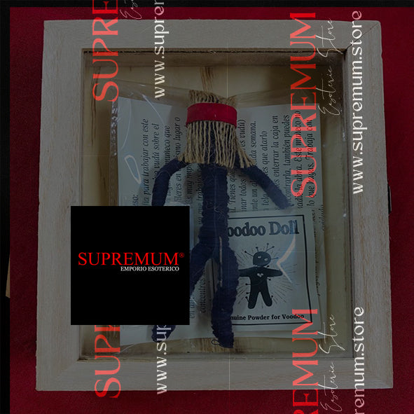 Autentica bambola vudù nera fatta a mano da esperti praticanti voodoo. Scatola il legno + spilli inclusi. Puoi acquistare nelle sessione dispense/libri la dispensa su come utilizzare una bambola voodoo.